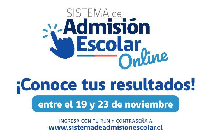 Estimada comunidad, actualmente se viene la etapa de entrega de resultados del proceso de Admisión Escolar, en que el apoderado deberá ingresar a la página web www.sistemadeadmisionescolar.cl y aceptar o rechazar el resultado por cada postulante.